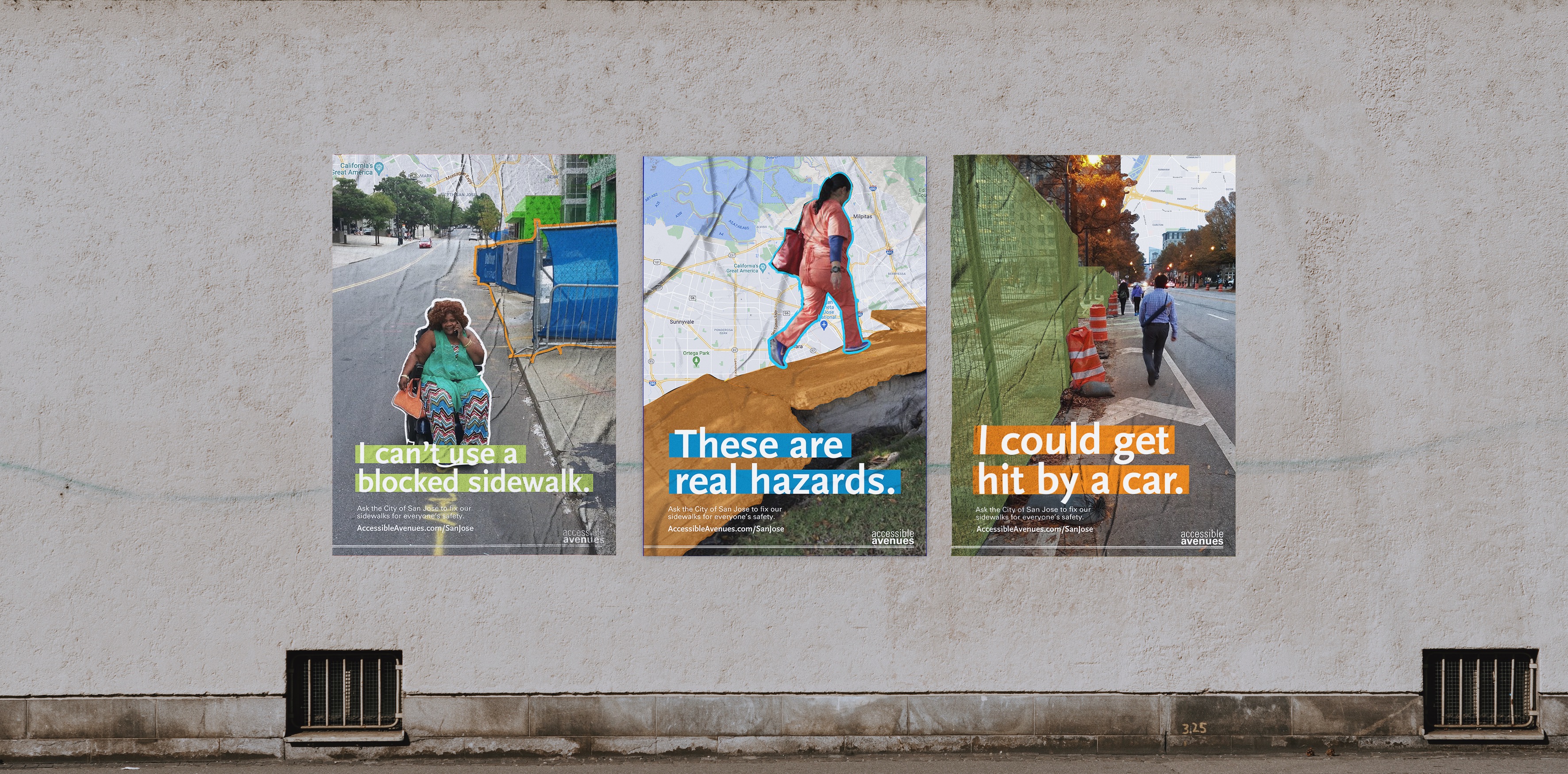 The entire campaign looks a bit gritty, with amateur photography of real streets and a handmade collage feel. This emphasizes the conditions that people in neighborhoods lacking proper sidewalk maintenance live in. Most of the campaign elements, such as posters and billboards, are meant to be placed on the street where pedestrians can see them while walking by.